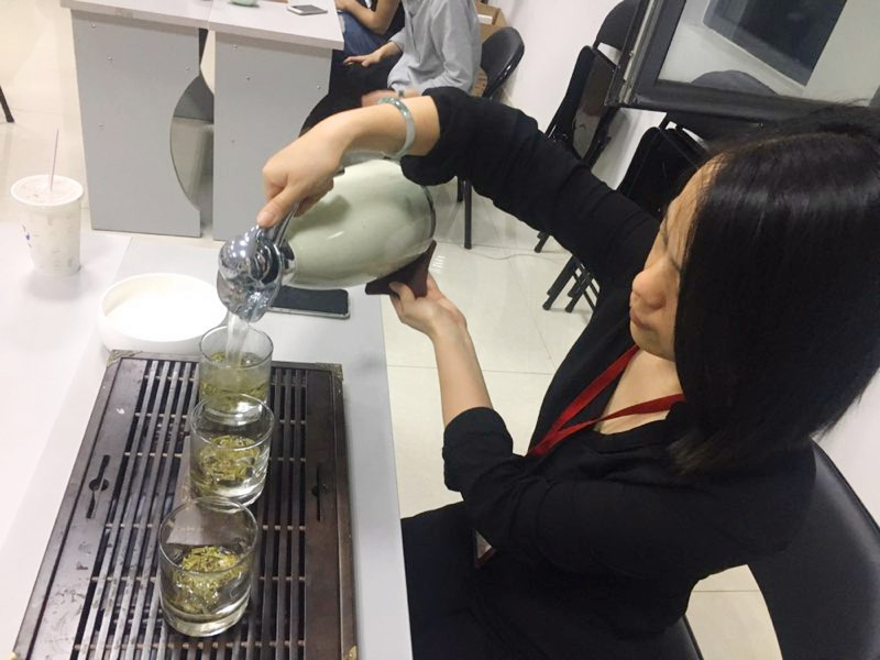 在隨后的茶藝培訓(xùn)里,劉琴老師更是細(xì)致的講解了不同茶的不同沖泡手法,通過現(xiàn)場呈現(xiàn)的方式讓大家對不同品類的茶葉有了更顯性的對比。溫杯、洗茶、泡茶、奉茶這幾個基本步驟是每一種茶葉的基本泡制步驟,參加培訓(xùn)的人員現(xiàn)學(xué)現(xiàn)泡,在劉琴老師的指導(dǎo)下泡茶,并互相奉茶,品茶,呷茶入口,頓覺口鼻生香,借茶香茶韻,一種淡泊謙和的意境油然而生。