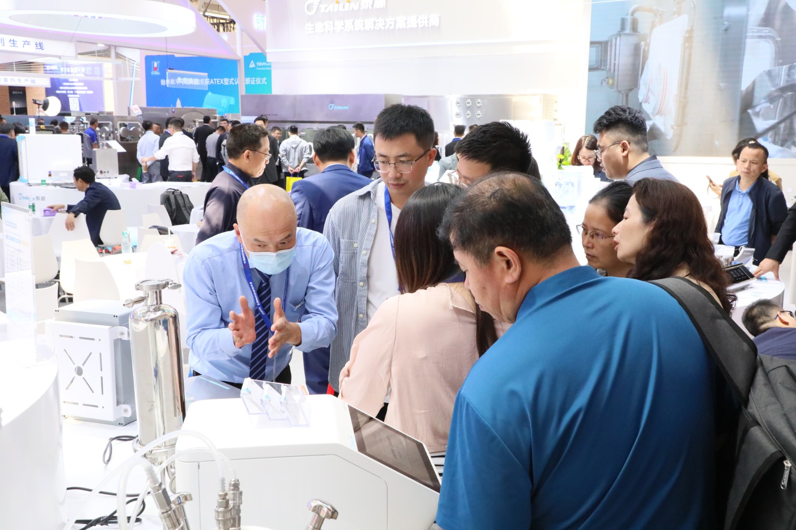 展會期間,絡(luò)繹不絕的觀眾聚集泰林生物展位,我們的工作人員全程提供專業(yè)的講解服務(wù),與現(xiàn)場各位專家學(xué)者、各企事業(yè)相關(guān)人員,多角度探討制藥裝備行業(yè)發(fā)展趨勢和最新的技術(shù)應(yīng)用,為制藥生產(chǎn)提供更加安全、高效和可靠的建設(shè)思路。