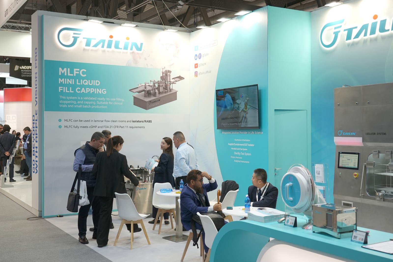 泰林生物作為生命科學領(lǐng)域“創(chuàng)新研發(fā)”和“新質(zhì)生產(chǎn)力”的代表,攜其旗艦產(chǎn)品無菌檢查隔離器、手套完整性測試儀、全自動菌落計數(shù)系統(tǒng)、智能集菌儀、微生物檢驗儀、濾芯測試儀等產(chǎn)品亮相,為行業(yè)呈現(xiàn)了一場數(shù)智科技場景成果盛宴。此次在海外展會首次璀璨亮相的微型液體灌裝機,以其卓越的即用型灌裝加塞軋蓋系統(tǒng)ML FC,成為了全場矚目的焦點。MLFC極致縮小尺寸,以適合隔離器化趨勢,滿足客戶在C級背景環(huán)境進行無菌灌裝的需求。泰林生物依托數(shù)智科技,創(chuàng)新運用自動化、AI等新興技術(shù),深入挖掘用戶需求,打造出全場景全流程自動化、數(shù)智化解決方案,滿足生命科學與高端裝備高質(zhì)量發(fā)展要求。