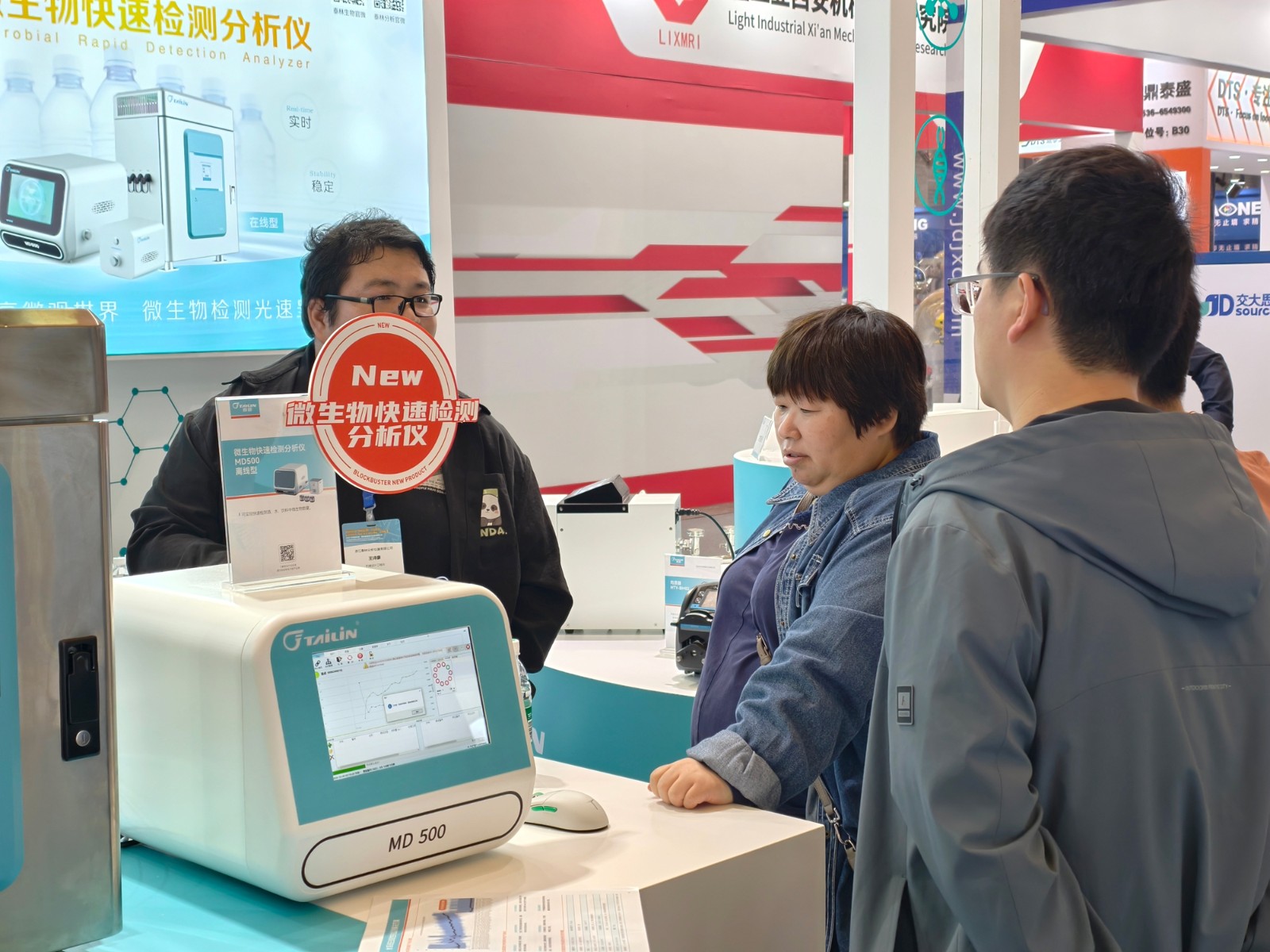 其中,最新推出的MD500型微生物快速檢測分析儀,憑借其卓越的性能,在酒、水、飲料的微生物檢測中表現出色,吸引了眾多觀眾的矚目。該儀器巧妙地融合了先進的激光誘導熒光技術與米氏散射原理,能夠在極短的時間內,對飲料樣品中的微生物進行迅速而精確的檢測。這一創新技術極大地縮減了檢測周期,為飲料企業帶來了即時且可靠的食品安全監控解決方案,從而顯著降低了產品微生物污染的風險。