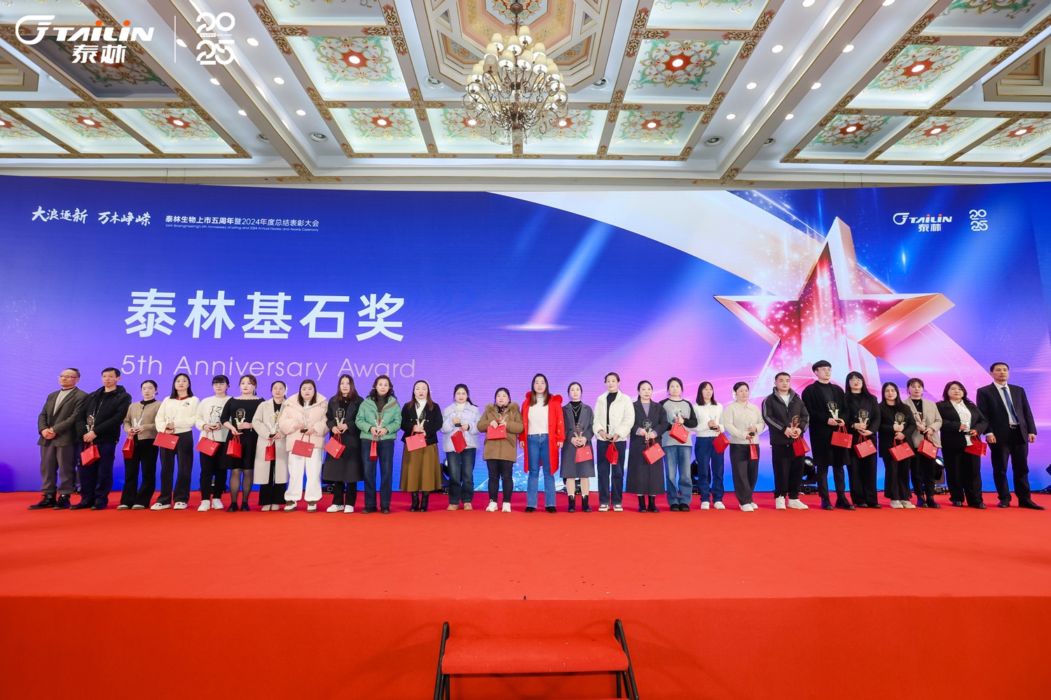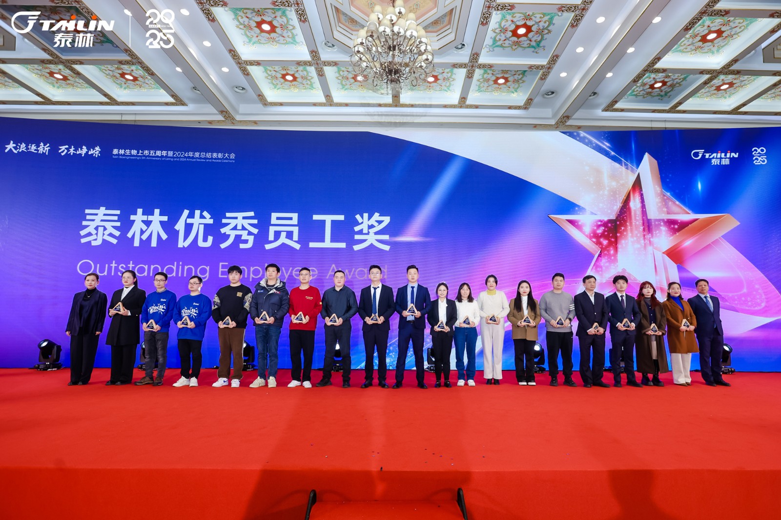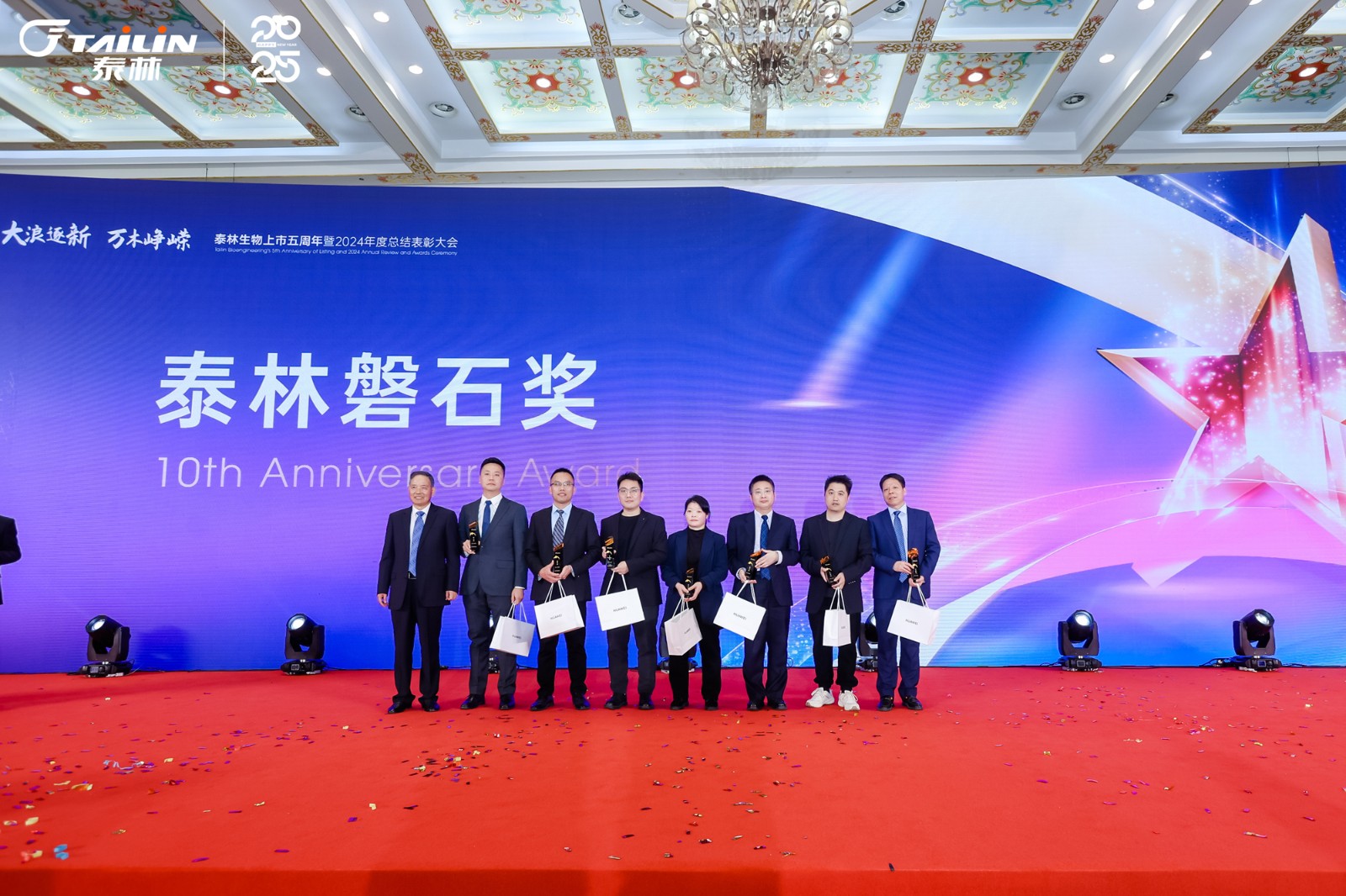 1月14日,“大浪逐新 萬(wàn)木崢嶸”——泰林生物上市五周年暨2024年度總結(jié)表彰大會(huì)在一片熱烈而莊重的氛圍中拉開(kāi)帷幕。浙江泰林生物技術(shù)股份有限公司董事長(zhǎng)葉大林先生,浙江泰林生物技術(shù)股份有限公司副總裁沈志林先生、夏信群先生,浙江泰林生物技術(shù)股份有限公司董事倪崖先生、楊忠智先生共同出席盛典。泰林水生態(tài)領(lǐng)域合作伙伴江蘇宏眾百德生物科技有限公司總經(jīng)理孫蓓麗博士一行受邀到場(chǎng)。老友重聚,新友相逢,舉杯暢飲,共同回顧2024泰林奮進(jìn)之路!