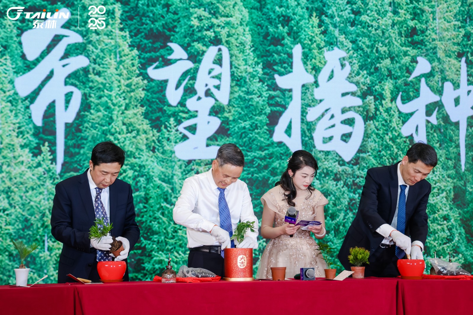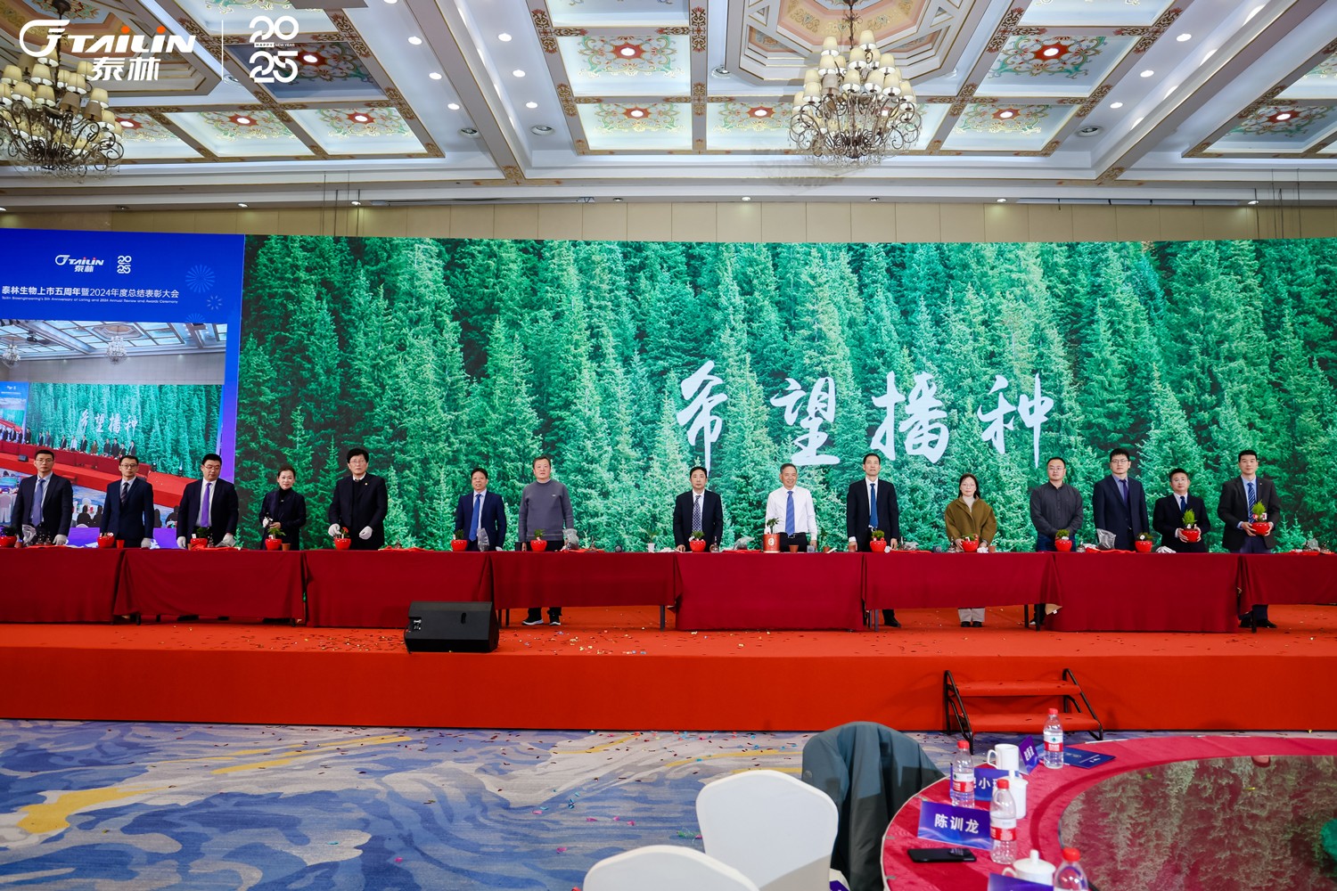 在大會(huì)的尾聲,舞臺(tái)上迎來(lái)了一幕溫暖的場(chǎng)景。領(lǐng)導(dǎo)團(tuán)隊(duì)攜手上臺(tái),將精心挑選的樹(shù)苗,親手植入盆栽之中,泥土的芬芳與新芽的生機(jī)交織,一場(chǎng)關(guān)于希望的播種儀式就此開(kāi)啟。讓我們攜手共進(jìn),在新的一年里,扎根于公司的沃土,汲取養(yǎng)分,茁壯成長(zhǎng),共同書寫更加輝煌燦爛的明天!