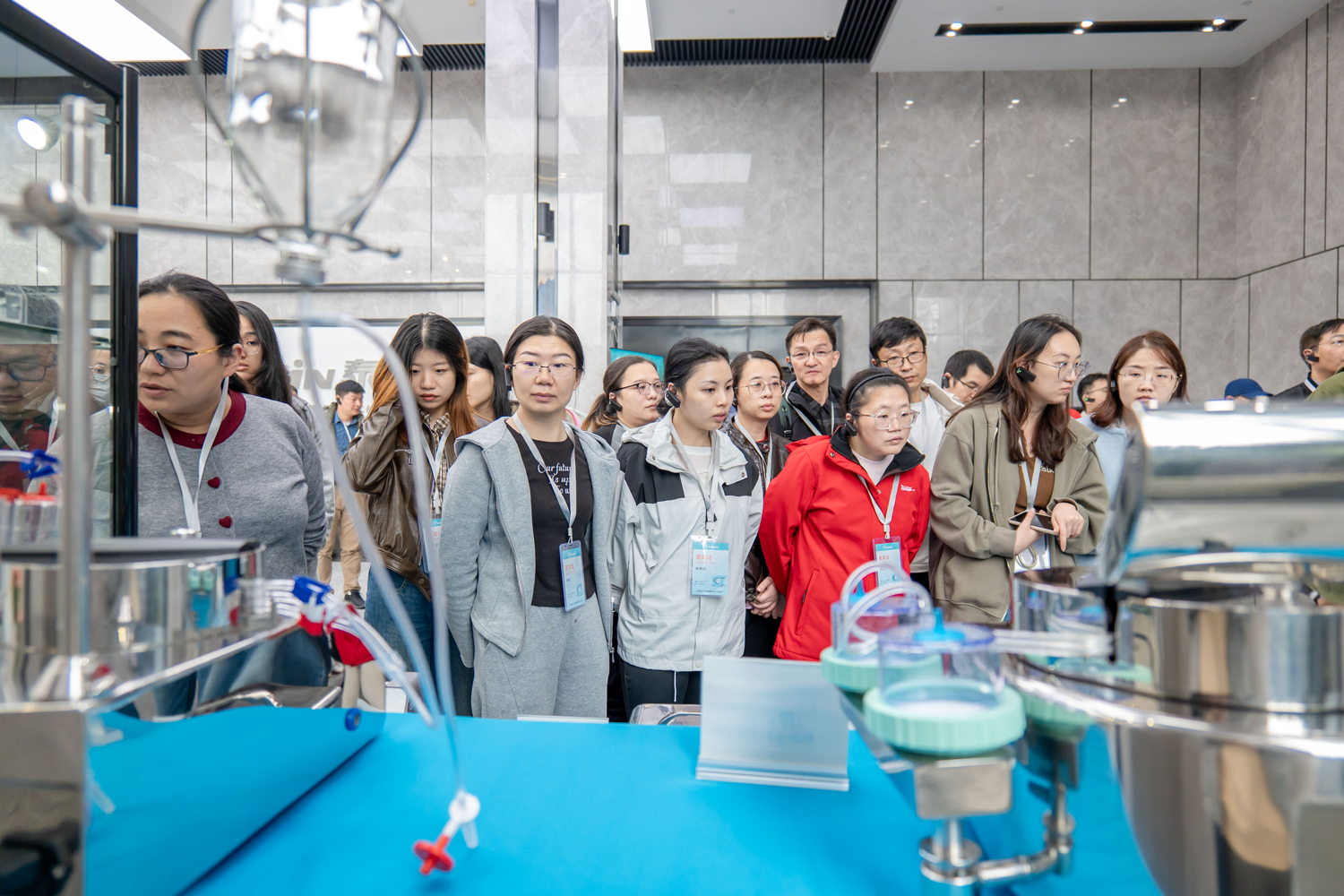 接著訪客團移步至泰林醫學工程園區的創新產品展示區和制藥裝備生產區,深入生產一線,實地考察了全自動菌落計數工作站、汽化過氧化氫消毒機、全自動無菌檢查培養系統的制造與質檢流程。高度規范的生產環境、精密的裝配工藝和嚴格的質量控制體系,贏得了在場嘉賓的頻頻頷首。